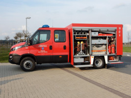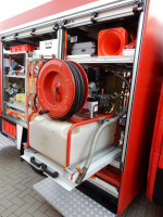 Die Tragkraftspritze wird auf einem stufenlos auszieh- und absenkbarem Schlitten im Heck gelagert. Geräteschlitten mit 4 Atemschutzgeräten und 4 Reserveflaschen. Die Lagerung für die 4-teilige Steckleiter erfolgt im Aufbau. Wassertank 750 Liter, Schnellangriff, ausschwenkbarem Lichtmast, wahlweise HDL (Hochdrucklöschanlage) oder Stromerzeuger 5 kva auf einem ausziehbaren Schlitten im Seitenraum