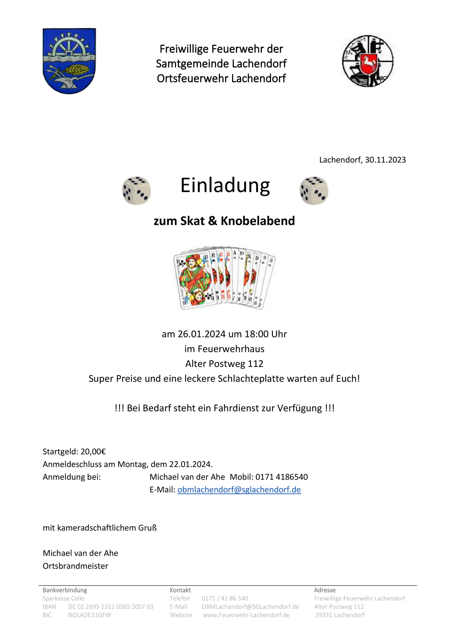 Einladung Skat & Knobeln Ortsfeuerwehr Lachendorf 2024