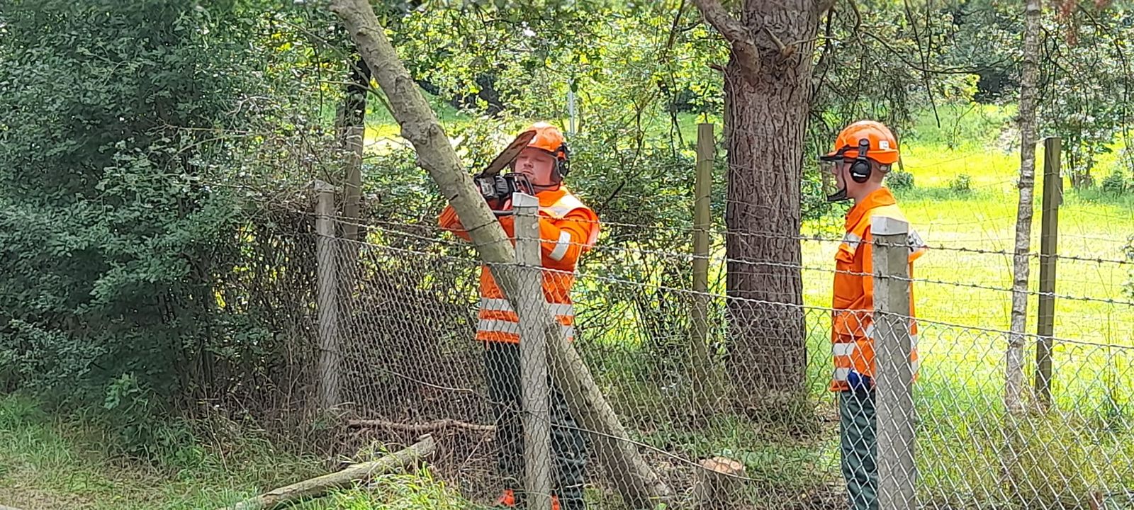 Bäume wurden mittels einer Motorkettensäge kontrolliert zu Fall gebracht und von der