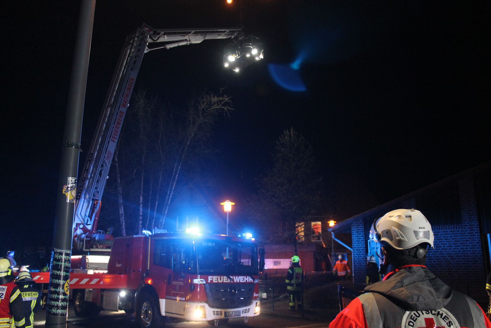 der Ortsverein Lachtetal vom Deutschen Roten Kreuz und von der Feuerwehr Wathlingen die Teleskopmastbühne nachalarmiert.