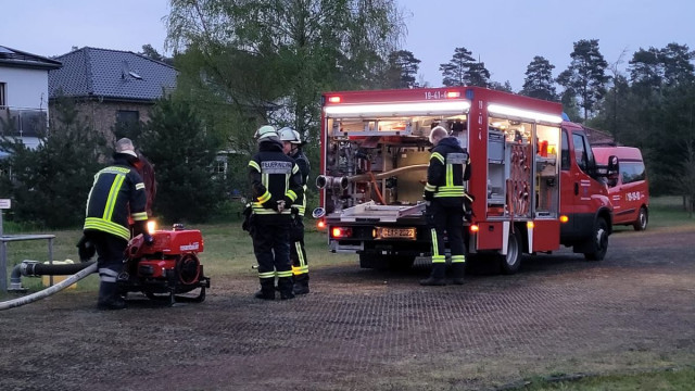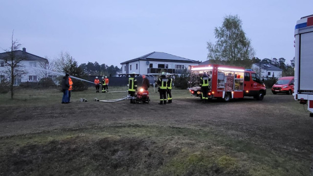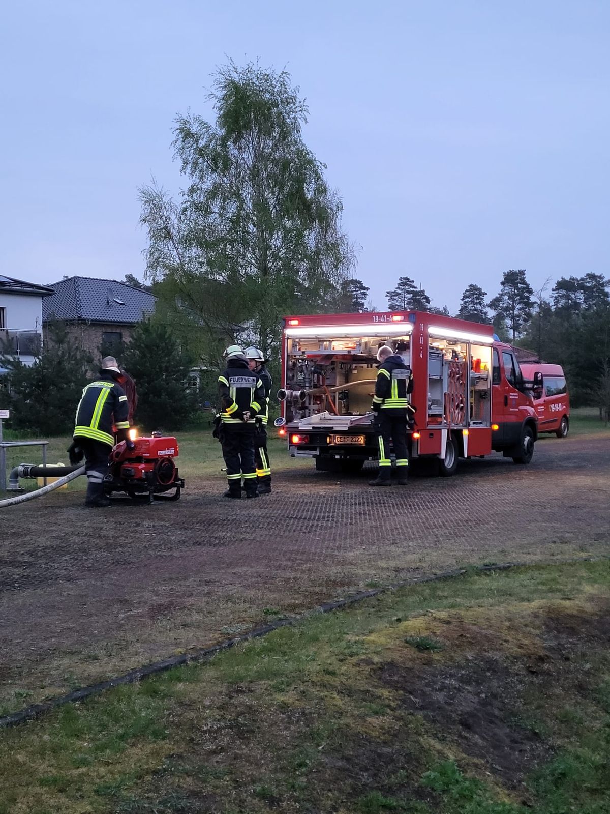 eingerichtet. Dort wurde mit der Pumpe Wasser aus dem Löschbrunnen gefördert und