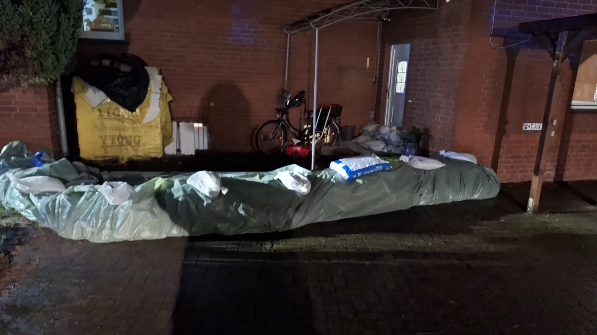 Umgehend wurde das Haus mit Sandsäcken und Folie vor dem Wasser geschützt.