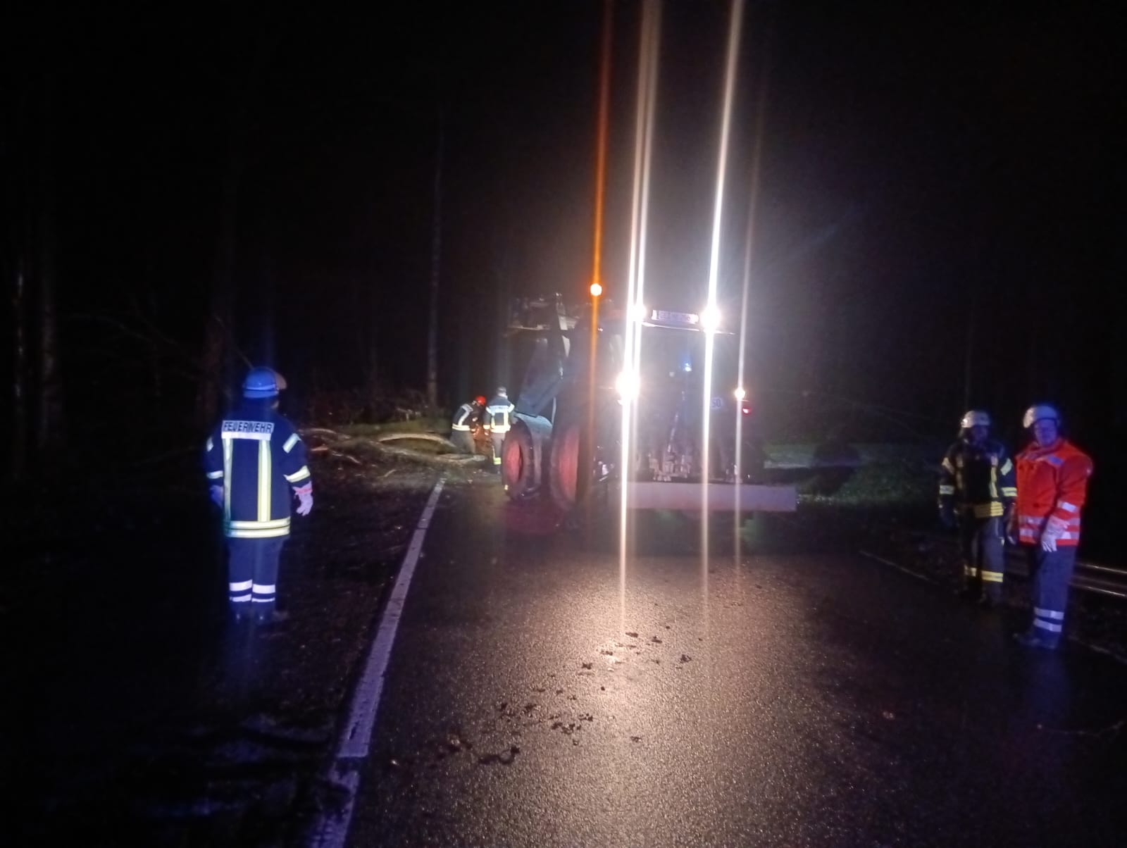 Wetters ein Baum auf die Fahrbahn gekippt.
