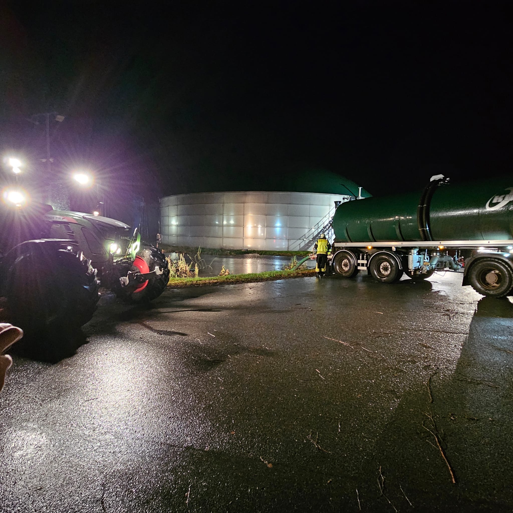 Zusätzlich wurden die Pumparbeiten durch drei Landwirte mit Güllefässern unterstützt.