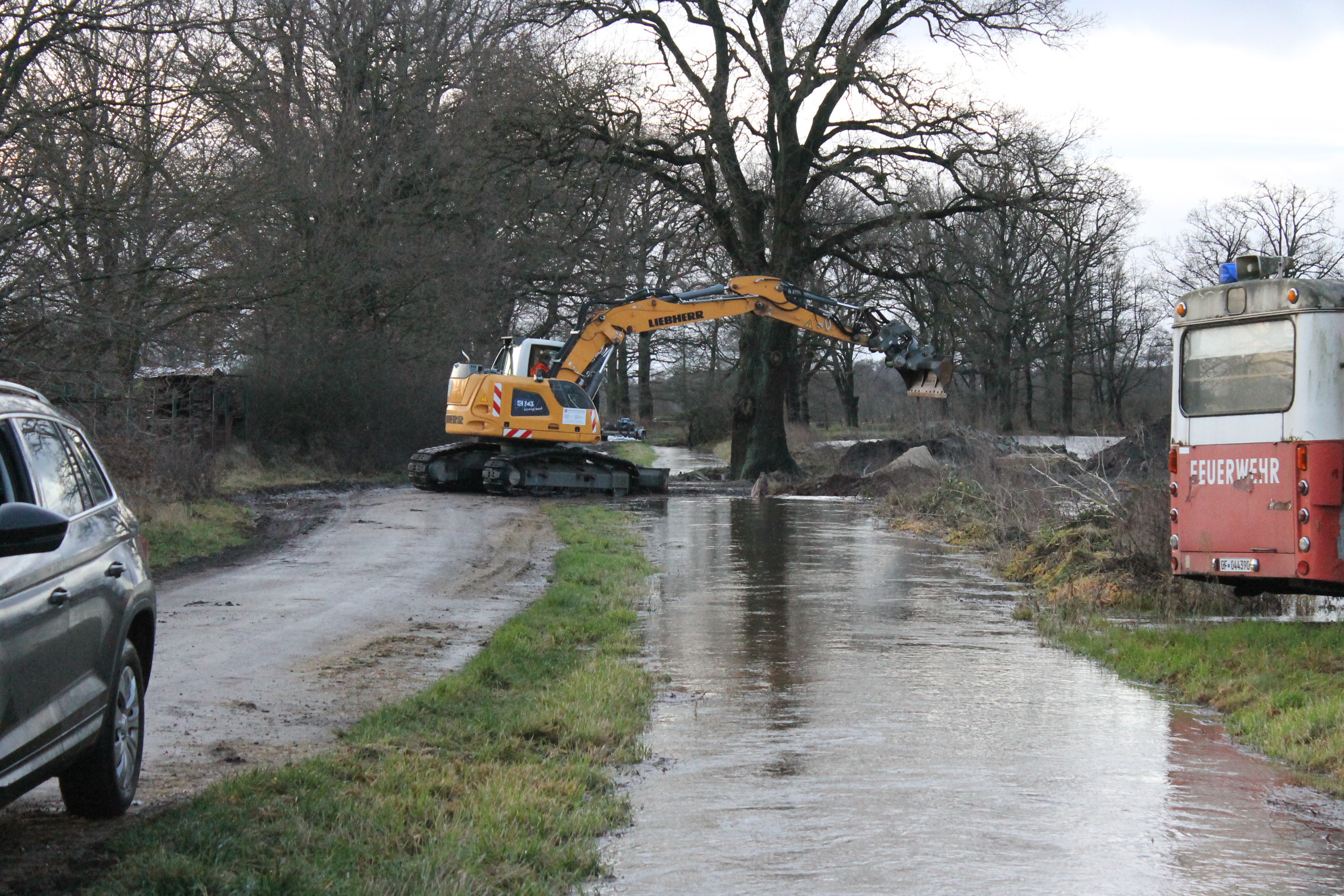 und pumpte dort eine Senke aus, da das Wasser drohte dort die Straße zu überfluten.